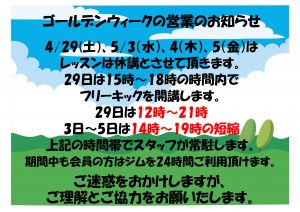 レッスンは全て休講となるのでお間違えのないようお願いします。