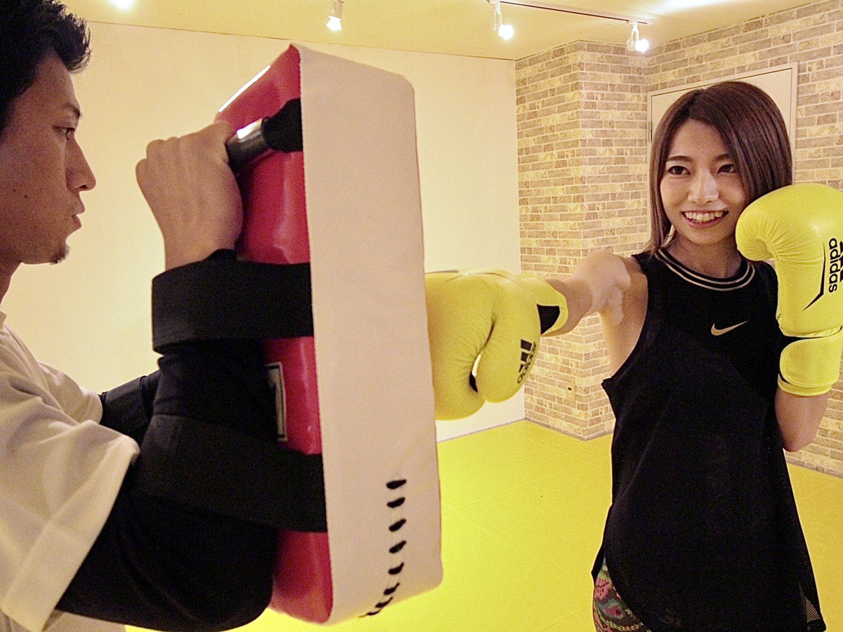 初めての方でもインストラクターが優しく教えてくれるので大丈夫。 ミットを叩いてストレス解消!!