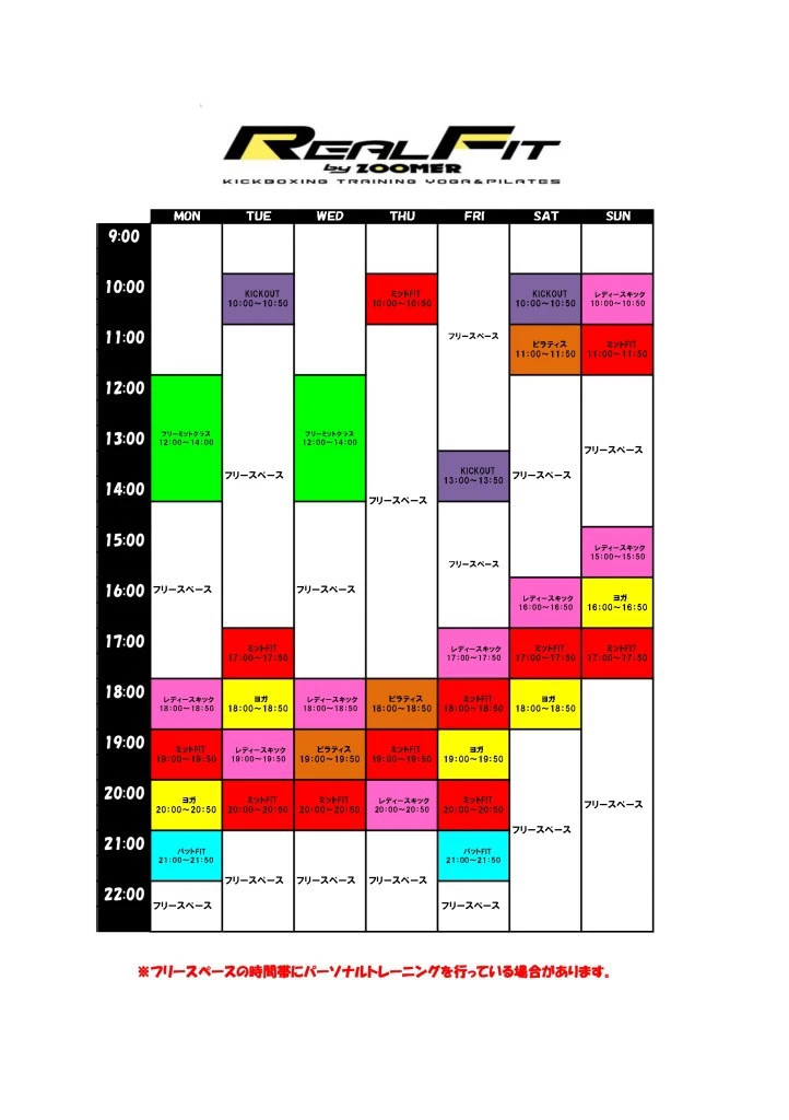 REAL FITはミットフィット50というレッスンがメインです。